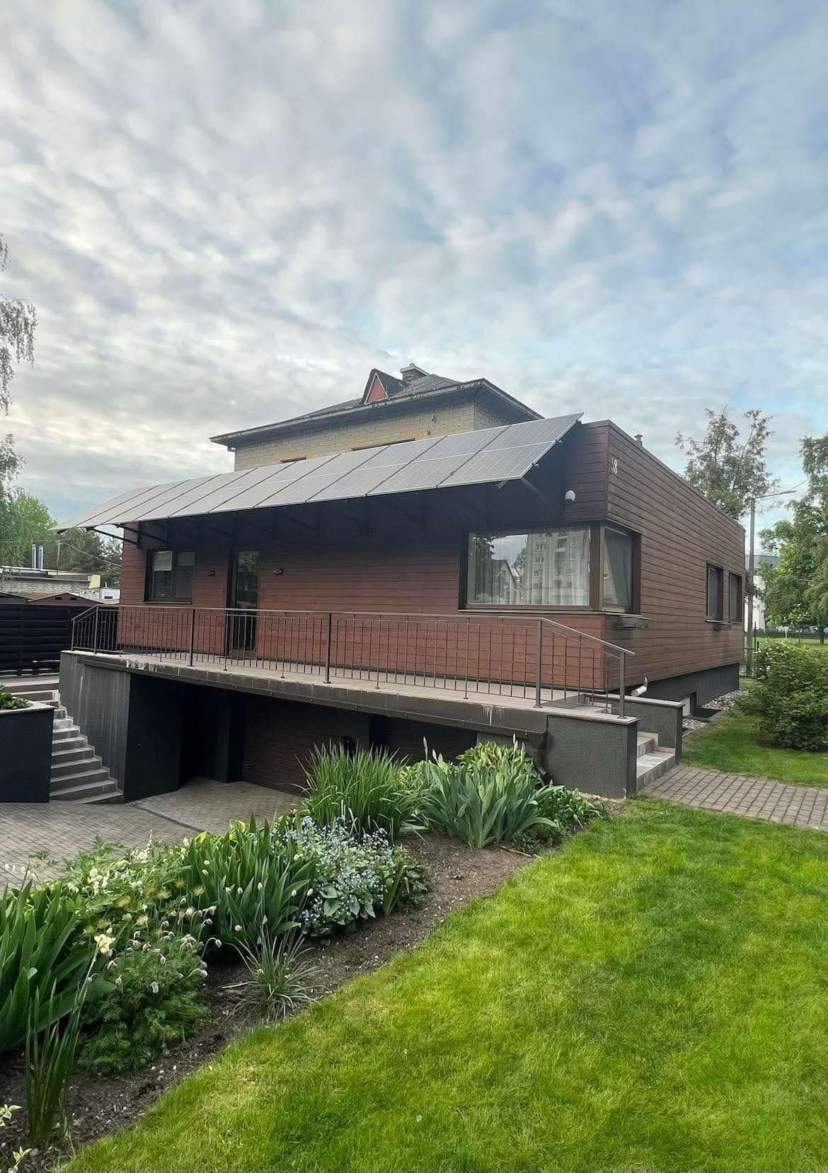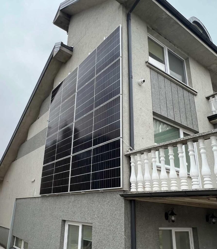Saulė labiausiai gali būti pasiekiame ne tik nuo stogo. Šiame projekte sumontavome saulės elektrinę ant namo šono, jog būtų pilnai išnaudota saulė.